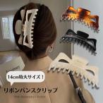 リボンバンスクリップ ヘアクリップ 特大 14cm 大きめ べっ甲 ブラック おしゃれ 大人 ヘアアクセサリー かわいい リボン CR-96