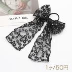 ヘアゴム フラワー 透かしレース ロングリボン 髪留め 髪飾り ヘアアクセサリー ※訳ありサービス品 返品不可(1ヶ)
