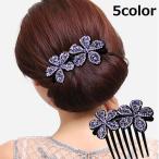 ヘアコーム 夜会巻きコーム ヘアアクセサリー レディース 女性用 ラインストーン お花 フラワー 髪飾り 髪留め キラキラ かわいい おしゃれ 華やか