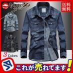 デニムシャツ メンズ トップス 長袖シャツ ウエスタンシャツ 綿100% スリム ショート丈 カジュアル ダンガリーシャツ 丈夫 秋服 かっこいい