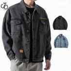 デニムジャケット メンズ Gジャン アウター 羽織 ユーズド加工 ダメージ加工 ヴィンテージ カジュアル 無地 紳士服 ゆったり 着痩せ 秋冬