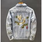 デニムジャケット 刺繍 メンズ Gジャン 春 デニムアウター ジージャン 鶴の刺繍 お洒落 デニム カジュアル XLサイズ