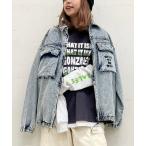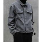 デニムジャケット gジャン 「25年秋冬新作」シルバーアクセント ケミカルウォッシュ スタンドカラーデニムジャケット メンズ レディース