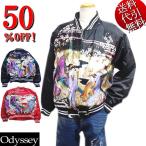 Odyssey/オデッセイ 浮世絵柄 UKIYOE 桜 JAPAN 総プリント 中綿キルティング リブ 光沢サテン ブルゾン/スカジャン 黒ブラック/赤レッド M/L/2L(LL/XL) 348633