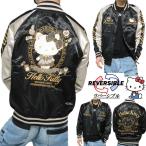 スカジャン キャラクター メンズ アニメ リバーシブル ハローキティ/サンリオ 刺繍 ユニセックス ブラック/ゴールド