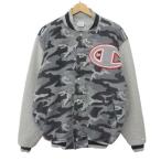 チャンピオン CHAMPION スタジャン ジャケット ブルゾン スウェット カモフラ ロゴワッペン M グレー メンズ