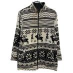 フリースジャケット M 程 ホワイト ブラック ジップアップ ノルディック 総柄 アウトドア アウター 古着卸 アメリカ仕入 a702-6013