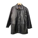 ノーブランド レザージャケット L 黒 ブラック ステンカラー ボタンフロント /NL ■GY61 メンズ