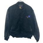 NEW LANDER スタジアムジャケット S ブラック スナップボタン ワンポイント 刺繍 レザー 切替 ブルゾン アウター 冬物 a711-5848