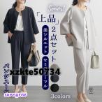 スーツ セットアップ レディース 上下セット 長袖 テーパードパンツ ジャケット パンツスーツ フォーマル フェミニン オシャレ きれいめ 体型カバー 春秋冬夏
