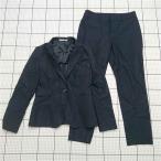 ウィズ with SLATECHNO STRESS RELIEF ストレッチ スカートスーツ 上下セット ストライプ 濃紺 7AR レディース
