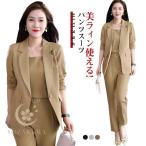 洗えるパンツスーツレディース大きいサイズビジネススーツセットアップ春秋仕事通勤OL女性オフィスカジュアル結婚式30代40代50代