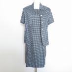 #snc アクアスキュータム Aquascutum ワンピーススーツ 9 紺 白 ツーピース チェック 半袖 美品 レディース [737199]