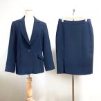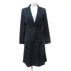ナチュラルビューティーベーシック スーツ テーラードジャケット シングル 1B タイトスカート ひざ丈 ストライプ ウール M L 紺
