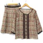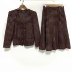 #wnc ジュンアシダ junashida スカートスーツ 9 茶 赤系 セットアップ ツーピース ツイード レディース [828940]