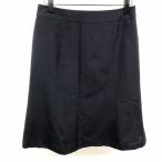 タカキュー TAKA:Q 若干薄手 Aラインスカート 同色ストライプ 裏地付き 後ろファスナー ひざ丈 ポリ×ウール L ダークネイビー レディース