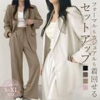 パンツスーツ レディース セットアップ 上下セット 大きいサイズ オフィス オシャレ パンツスタイル 通勤OL 着痩せ 体型カバー ゆったり キレイめ ママスーツ