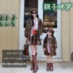 親子コーデ 母娘 セットアップ ジャケット スカート レザー PU 韓国 コーヒー色 かっこいい プリーツスカート 親子ペア リンクコーデ 新着 春 秋 初秋 柄ワンピ