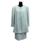 ALPHA CUBIC アルファキュービック セットアップ スーツ ノーカラー ジャケット 一つ釦 セレモニー スカート 38 ライトグリーン レディース 古着 中古