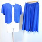 #spc シセンドウ 詩仙堂 ヒトシタムラ スカートスーツ 青 ちりめん 半袖 ジャケット ノーカラー ロング フレア レディース [769034]