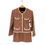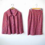 #wnc サンジョア Saint Joie スカートスーツ M 赤 マルチ ツーピース ツイード タイトスカート レディース [859401]