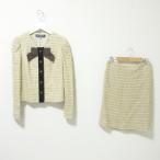 美品 M'S GRACY エムズグレイシー ラメニット ノーカラージャケット スカート セットアップ スーツ 38 ベージュ レディース 古着 中古