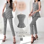 パンツスーツ夏レディースパンツセットノースリーブジャケット+パンツ チェック柄テーラードジャケット 九分丈パンツ 通勤秋スーツビジネス オフィス フォーマル