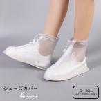 レインシューズ ホワイト カバー シリコン 靴の上から履くだけ 防水シューズカバー 男女兼用 ((S