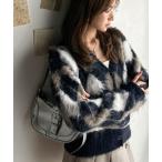 ニットカーディガン レディース カーディガン ボア アーガイル Vネック アウター 秋 冬 A/W vl-5442
