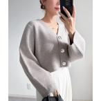 カーディガン メタルスクエア釦クルーネックカーディガン レディース