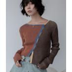 カーディガン アシンメトリーMIX配色リブニットカーディガン/新色追加 レディース
