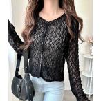 カーディガン 「mily bilet」華奢見えレースで大人の甘さを。クリアボタンシアーレースカーディガン(長袖) レディース