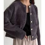 カーディガン ツイードライクショートニットブルゾン レディース