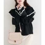 カーディガン 配色フリルニットカーディガン レディース