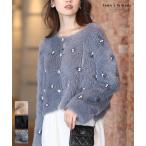 レディース トップス カーディガン ニット ブラック ベージュ グレー 長袖 フェザー ファー パール 大人可愛い 大人 可愛い 30代 40代 50代 60代 サワアラモード