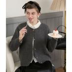 カーディガン 「人気デザイン!アルパカ混/ビジュー付き」ニットカーディガン レディース