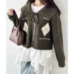 カーディガン ロゴモチーフケーブルショートニットカーディガン レディース