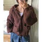 カーディガン 「秋冬新作」フード付きケーブルニットカーディガン レディース