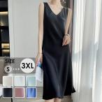ワンピース ノースリーブ 絹 ワンピース シルクサスペンダードレス ノースリーブ マキシ丈 ホワイト ブラック アイボリー ピンク ブルー グリーン 2L 3L 4L