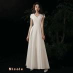 結婚式ドレス タイト vネック 半袖 ひざ丈 無地 発表会 演奏会 レディース 結婚式 ステージ衣装 エレガント ウエディングドレス