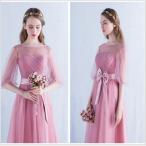 ブライズメイド ドレス ミモレ丈 編み上げ 大きいサイズ 結婚式 体型カバー 半袖 フリル オフショルダー二次会 卒業式 花嫁 ピアノ 発表会 演奏会
