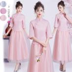 中国風 ブライズメイドドレス お揃いドレス ロングドレス ピンク グレー あずき トップス スカート 花嫁の介添えドレス 二次会 発表会