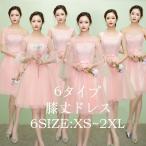 XS〜XL ブライズメイド ドレス ドレス 膝丈ドレス ショートドレス パーティードレス ワンピース ショート丈 4タイプ 花嫁 結婚式 発表会 演奏会