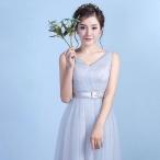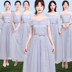 ブライズメイド ドレス ミモレ丈 二次会 背開き 編み上げ Vネック 結婚式 体型カバー 半袖 フリル オフショルダー二次会 卒業式 花嫁 ピアノ