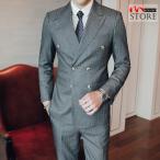 メンズ 3ピーススーツ ダブルスーツ スリーピース スリーピー ビジネススーツ6つボタン 秋 ストライプ柄 細身 結婚式 通勤 二次会 卒業式