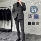 スーツ メンズ ス 上下2点セット 2つボタン レギュラーフィット 上下洗える ウォッシャブル 2ピーススーツ ジャケット ズボン 伸縮 ストレッチ ビジネス