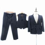 WAKITAS シングルスーツ 3ピース セットアップ 上下 テーラードジャケット ストライプ柄 ベスト スラックスパンツ アンクル丈 紺