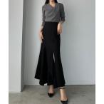 スカート ウォームイレヘム深スリットハイウエストマーメイドスカート(裏地無し)