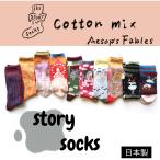 ソックス おしゃれ 靴下 日本製 アシンメトリー レディース イソップ寓話 ストーリー