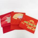名古屋帯 名古屋帯セット 3点セット 紅葉文様 扇子文様 青海波文様 赤xオレンジxゴールド 金糸 レトロ まとめ売り